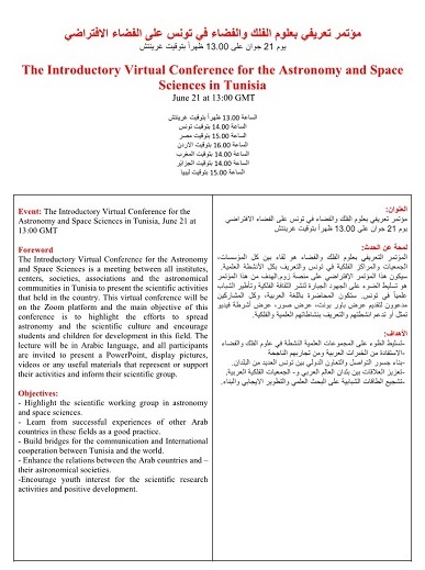 عميد الكلية مشاركا في ندوة بعنوان: مؤتمر تعريفي بعلوم الفلك والفضاء في تونس